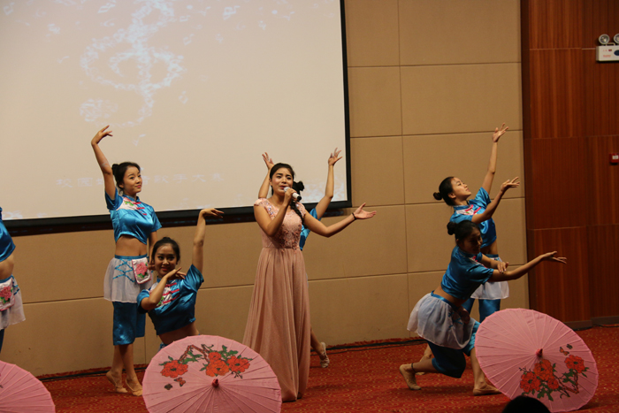 此次决赛采取4+X模式,即各系代表队分4个独唱和1个4-5人的组合进行作品展示。评委由艺术类专业的专家担任,按照四个独唱各10分、组合30分、节目创编30分的评分项目打分。比赛过程精彩纷呈,音乐舞蹈系代表队首先出场,他们以《印象徽州》为主题,精选了5首描写徽文化和黄山的声乐作品,并通过舞蹈等元素,营造出“无梦到徽州”的意境。戏剧影视系的节目亮点多多,糅合戏曲、现代舞、武术等元素的表演,给人耳目一新的感觉。新闻播音系的节目以“致青春”为主题,校园歌曲加上情景表演,“小清新”的校园风扑面而来。传媒系则以励志青春为主旋律,一首首励志歌曲洋溢着青春的激情,获得了大家的情感共鸣。