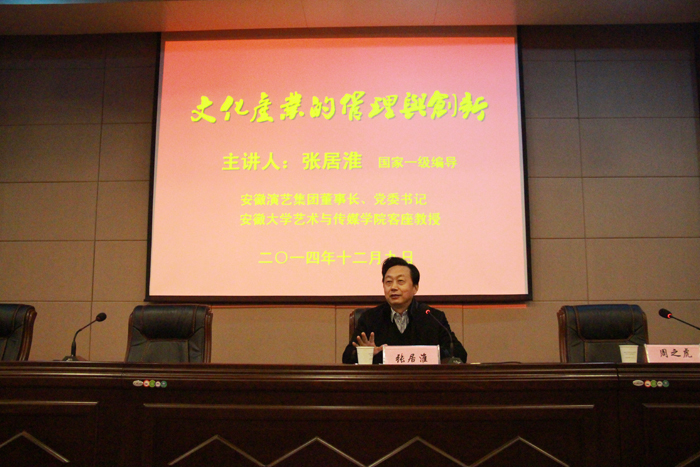 校企合作签约仪式与客座教授聘任仪式结束后,张居淮教授为全院师生作了题为“文化产业的管理与创新”学术讲座。他从文化产业的概念,我省文化产业发展的历程、出现的状况与问题,以及解决的对策与思考等方面做了详细的阐述。整场讲座在轻松、愉悦、和谐的气氛中圆满结束。此次讲座,不仅使同学们对文化产业有了更深层次的理解,同时也解除了同学们学习、就业方面的一些困惑,增强了同学们的学习积极性,与此同时,也让同学们深深地感受到张居淮教授的谦卑与亲切。