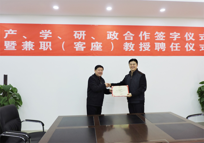 周之虎简要介绍了学院组建情况,他指出学院近期工作重点在抓内涵建设,积极推进校企合作,与省内各艺术院团、传媒机构签署合作协议,聘请一批知名艺术家担任学院客座教授。他希望双方加强了解和沟通,充分发挥各自的优势,在人才交流及培养、大学生校外实践基地等方面深入开展合作,并聘任安徽省黄梅戏剧院国家一级演员蒋建国、吴亚玲担任学院客座教授。