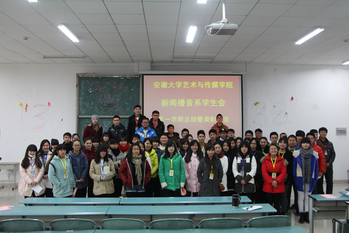 1月12日,新闻播音系学生会在1号教学楼第三阶梯教室成功召开了2014-2015学年度第一学期期末总结暨表彰大会,新闻播音系主任吴孔铎、院团委副书记陈明、系学管秘书刘涛老师出席会议,学生会全体成员参会。