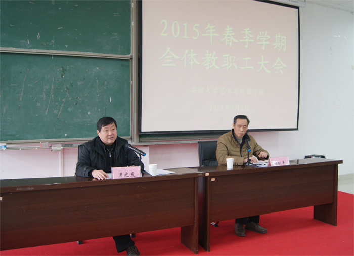 最后,周书记对2015年工作提出四点要求。一要坚定信心。虽然新葡的京集团3512vip的申报设置工作是安徽省历次院校申报设置中最艰难的一次,有教育部政策红线的限制,有遗留问题交织其中,复杂性、艰难性非比寻常,但省政府下了这么大的决心,教育部也把新葡的京集团3512vip设置作为遗留问题,因此,我们一定要坚定信心。虽然过程艰难复杂,道路曲折,但前途还是光明的。二要加强学习。组建安徽大学艺术与传媒学院,筹建新葡的京集团3512vip,没有先例可循,需要我们不断学习,创新工作方法。程艺厅长曾说过,新的体制要用新的方法,过渡时期要用过渡办法。因此,我们要经常思考工作,研究工作,研究行业发展的趋势,切不可固守老一套,固步自封,裹足不前。三要团结合作。大家为了一个共同的目标,走到一起来了。在一起共事,要讲奉献,讲宽容,讲礼让,求大同存小异。要积极营造一种畅所欲言、心情舒畅、和谐融洽、生动活泼的政治生态。团结要坚持五湖四海,不要拉帮结伙,不得以人划线,不要搞“圈子文化”。四要遵守规矩。守纪律讲规矩是做好工作、干好事业重要的基础和前提。一个单位、一个部门,如果松松垮垮、自由散漫,没有红线和底线,就会如无舵之舟般迷失方向,不但不能干事、干不成事,而且还极有可能问题丛生、错误连连。国有国法,党有党纪,单位有单位的规矩。他特别强调要遵守劳动纪律。要坚决杜绝迟到、擅离职守、无故旷工等现象。上班期间要坚守岗位,不得随意离岗、串岗、聊天、玩手机或从事其他与工作无关的事。上、下午要准时到岗。教师非经批准,不得随意调课,更不能无故停课。党员干部要牢固树立纪律和规矩意识,在守纪律、讲规矩上作表率。要进一步建立完善考勤管理制度,加强监督和责任追究力度,坚持从制度上督促纪律的严格执行。对不守规矩的人将严格按照相关规定予以查处。