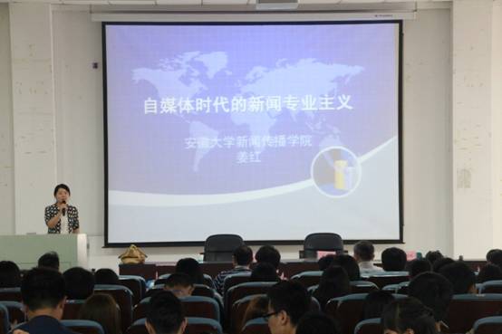 “在今天这个时代,正是由于大量的网络‘公民报道者’的出现,才凸显了职业新闻人的重要性。独立的专业主义追求是新闻业‘不死之神’。”安徽大学新闻传播学院院长、博士生导师姜红教授在新闻播音系学术活动月第四场讲座上作了以上表述。