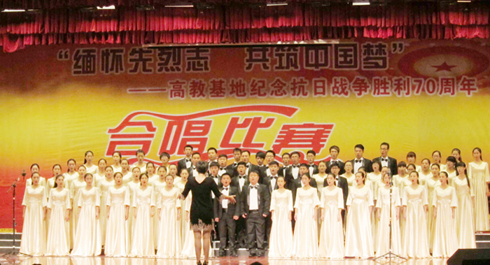 9月29日下午,由新站区社会事业局主办的“缅怀先烈志 共筑中国梦”高教基地纪念抗战胜利70周年合唱比赛在安徽新华电脑专修学院报告厅隆重举行,新站区管委会副主任余勇、区社会事业局、磨店社区及高教基地各院校相关领导莅临了活动现场,我院党委副书记沈端良、音乐舞蹈系直属党支部书记孙来法应邀出席了大赛。
