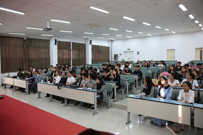 李龙斌重点对徽剧的起源、发展和对京剧的影响做了详细的阐释,边讲授边演绎,在座师生不时爆发出阵阵掌声。