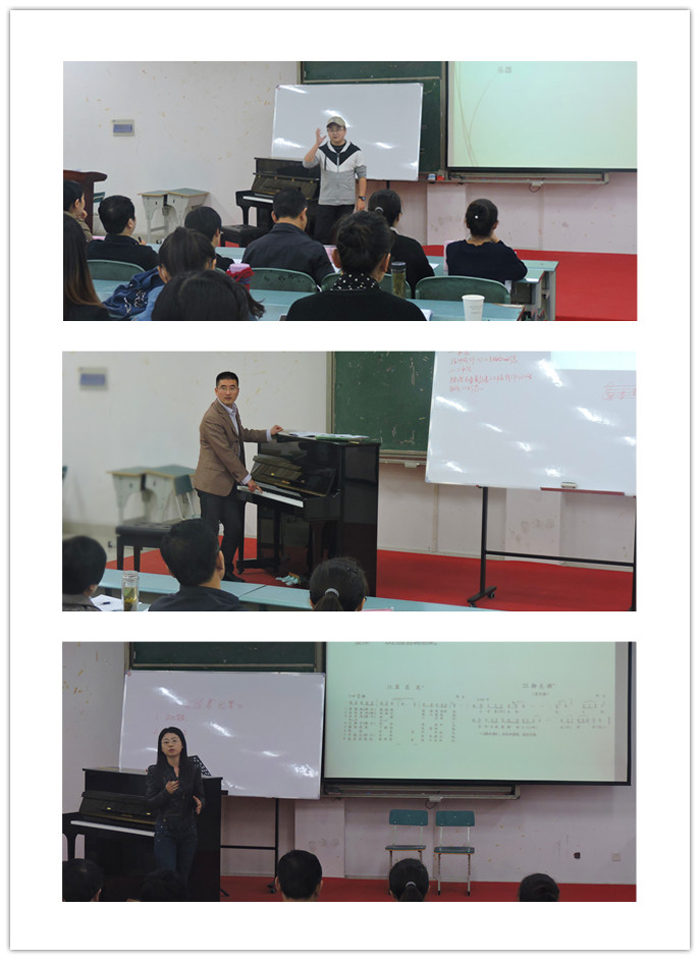 2015年10月28日下午,音乐舞蹈系在一教第二阶梯教室隆重举办了“青年教师教学基本功竞赛”决赛,参赛的11位青年教师都是在“教研室青年教师教学基本功展示活动”中脱颖而出的,老师们以丰富的教学形式、科学的教学方法、精彩的讲解展示了他们较高的艺术素养和扎实的教学功底,感染了现场师生,获得了大家的一致好评。现场观摩的同学说:“看了老师们的精彩讲解,发现自己要学的东西太多,深有感触,有这样的老师真好!”