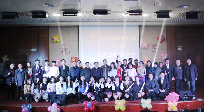 2015年12月29日晚,新闻播音系在学术报告厅举办了2016年元旦联欢会。学院党委书记、院长周之虎,副院长张晶、郑善忠莅临晚会现场。教务处等相关部门及兄弟系部领导应邀出席晚会,与我系师生共庆新年。