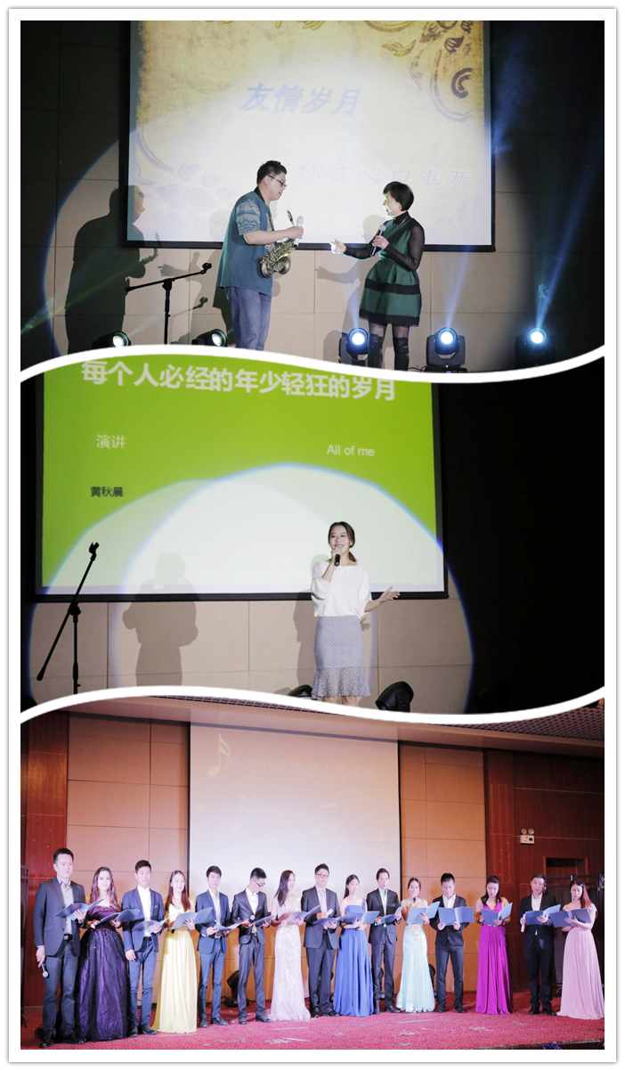 回望青葱岁月,展望锦绣未来,轻快的歌曲伴着优雅的吉他弹奏拉开了汇演的序幕。湖南卫视主持人杜海涛、安徽卫视主持人马滢、余声等著名的节目主持人和教师的祝福视频,将大家带入了满满的感动之中。结合播音主持专业特点设计的“创意播报”,体现了专业特色、展现了同学们扎实的功底;主题演讲《年少轻狂的岁月》发自肺腑、感人至深;围绕着是“追逐梦想”、还是“稳定工作”的话题展开的激烈辩论令人深思;感人至深的大合诵表达了毕业生们对校园生活的留恋和对学弟学妹们的殷殷期盼。萨克斯吹奏、歌曲、舞蹈、小品、朗诵等彰显艺术特色的节目,展现了同学们多才多艺的一面,赢得了现场观众的阵阵掌声。