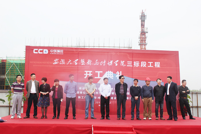 百花齐发、彩旗飘扬、鞭炮齐鸣。5月2日上午,安徽大学艺术与传媒学院新校区一期工程三标段项目开工仪式成功举行。仪式由中标单位中筑城投建设有限责任公司副总经理罗远杰主持。应邀出席的领导有学院党委书记、院长周之虎、副书记沈端良、副院长张晶、副院长郑善忠等一行。项目施工方、项目监理方、项目审计方及学院教职工代表近百人参加了开工仪式。