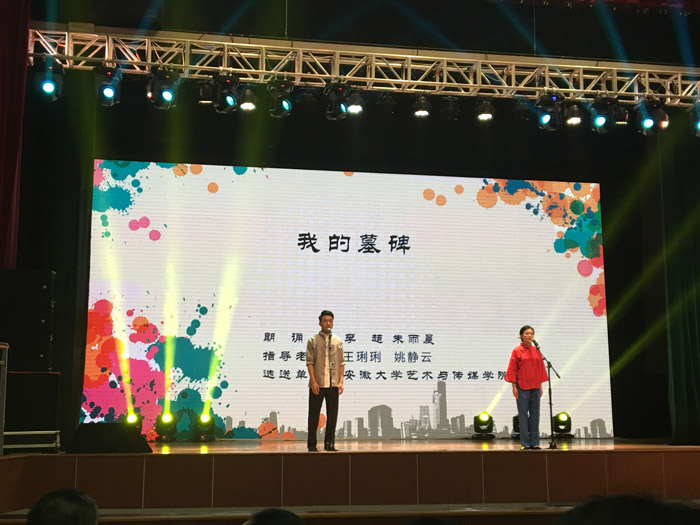 从大赛组委会了解到,今年“讯飞杯”诗文朗诵比赛吸引了我省90多个学校,248篇作品参赛。无论从参与学校,还是参赛作品都创下新高。经过预赛专家组的认真遴选,有来自安徽大学、安徽师范大学、安徽大学艺术与传媒学院等高校的30部作品进入比赛的决赛环节。可喜的是我院选送的三篇作品均进入大赛决赛。