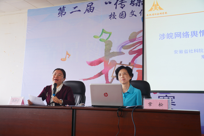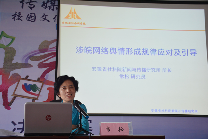2016年6月1日下午,安徽省社科院新闻与传播研究所所长常松研究员应邀来我院做了《涉皖网络舆情形成规律应对及引导》的学术讲座,这也是学院2016年教学学术研讨会系列讲座之一。讲座在1教第二阶梯教室进行,由新闻播音系主任助理陈静宇副教授主持。