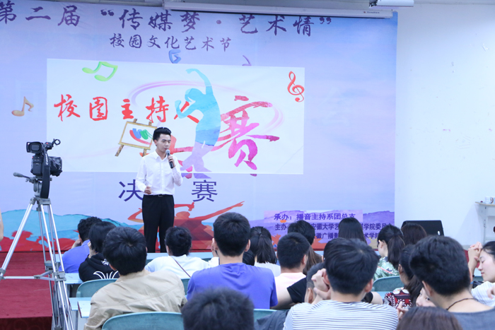 聆听魅力声音,感受活力精彩。 6月2日晚上6点,由共青团安徽大学艺术与传媒学院委员会和共青团安徽广播影视职业技术学院委员会共同主办、播音主持系团总支承办的第二届“传媒情、艺术梦”校园文化艺术节之“十佳主持人大赛”决赛在一教第二阶梯教室隆重举办。安徽大学艺术与传媒学院党委副书记沈端良,安徽广播影视职业技术学院党委副书记、副院长徐振轩出席本次大赛,安徽大学艺术与传媒学院新闻播音系副主任王琍琍、安徽广播影视职业技术学院播音主持系副主任余涓、院团委书记陈明等三位老师担任本次大赛评委,来自两院的200余名师生现场观看了比赛。