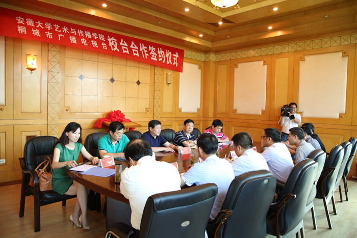 6月17日下午,我院与桐城广播电视台“校台合作签约仪式”在桐城市举行。院党委书记、院长周之虎,副院长张晶等院系领导,桐城市副市长张支南、桐城广播电视台台长吴茂松等出席了签约仪式。