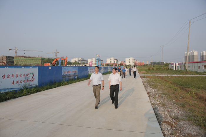 王佩刚一行首先查看了新校区基本建设规划沙盘,听取了校园整体规划介绍。