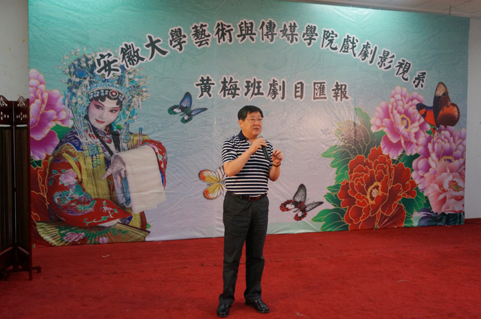 高阳当空照,清风送飒爽。在这六月的黄梅雨季,安徽大学艺术与传媒学院戏剧影视系2014黄梅本科班和2015黄梅专升本剧目汇报演出于2016年6月28日下午2点在一教二阶举行。院领导周之虎、张晶、郑善忠及各系部负责人到场观看。