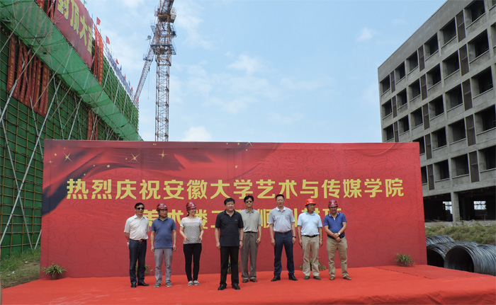 7月8日上午,学院一期工程首批建设项目一标段美术楼单体举行简朴而隆重的封顶仪式。安徽大学艺术与传媒学院党委领导班子成员、相关系部负责人以及一标段施工方相关负责人参加了封顶仪式。