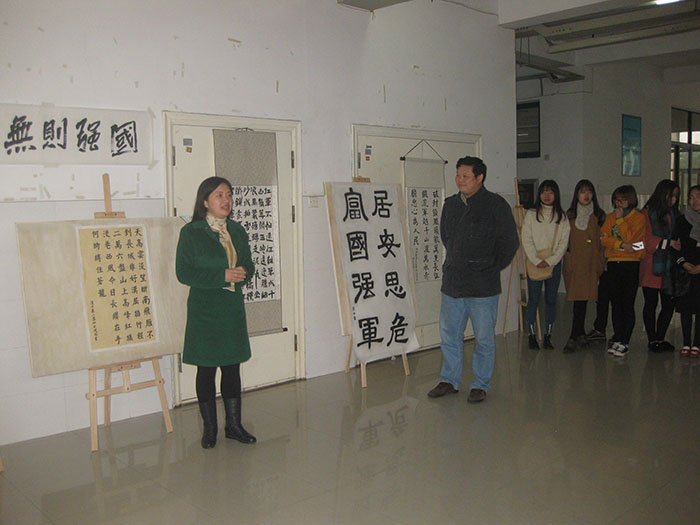 11月9日下午,院团委书记陈明、美术设计系党总支副书记张丽丽及美术设计系师生参观展览,指导教师王力平对作品做详细介绍。
