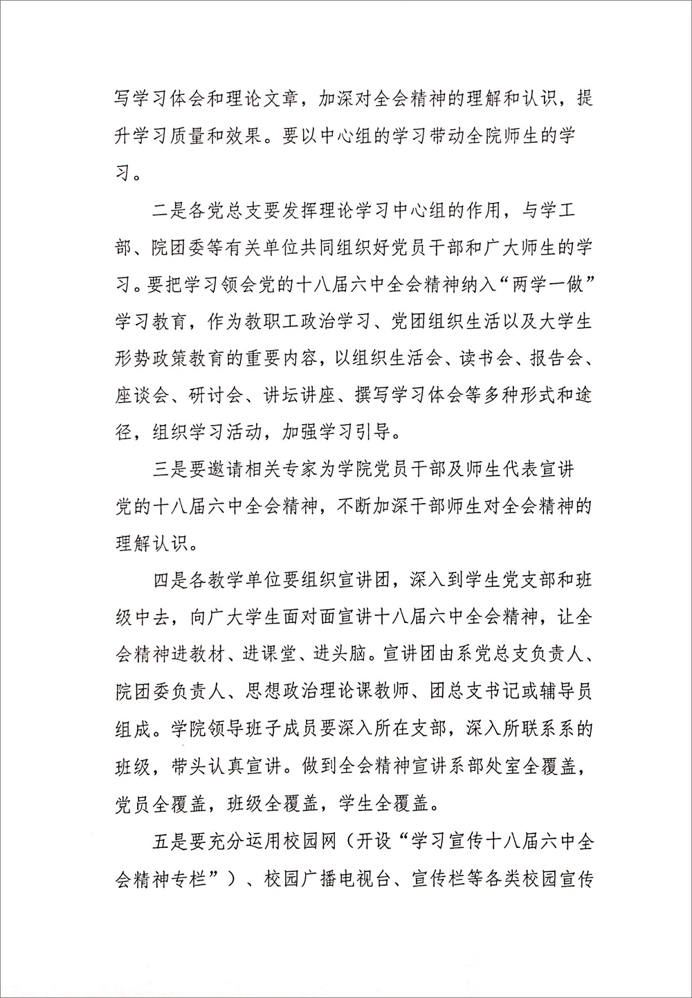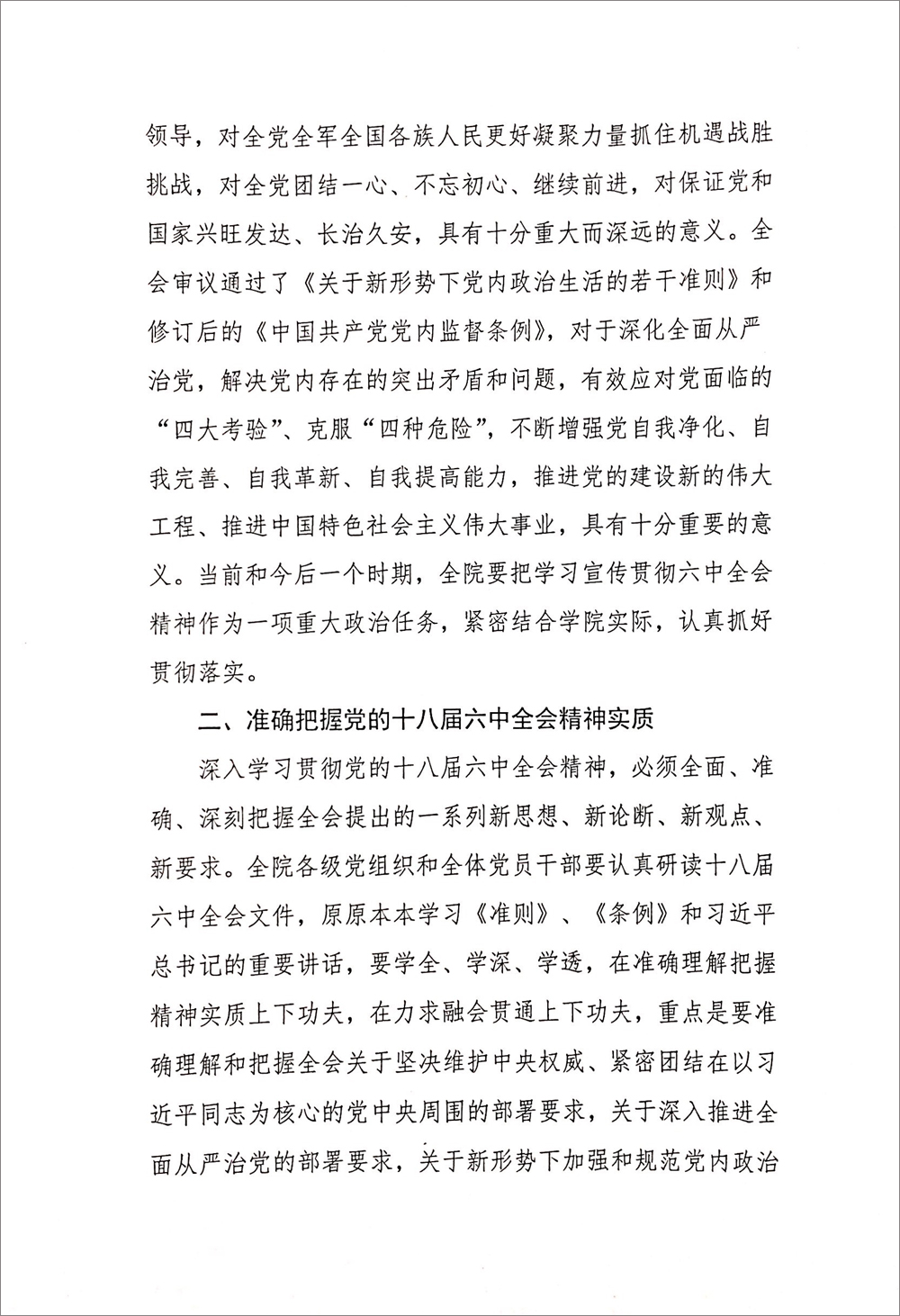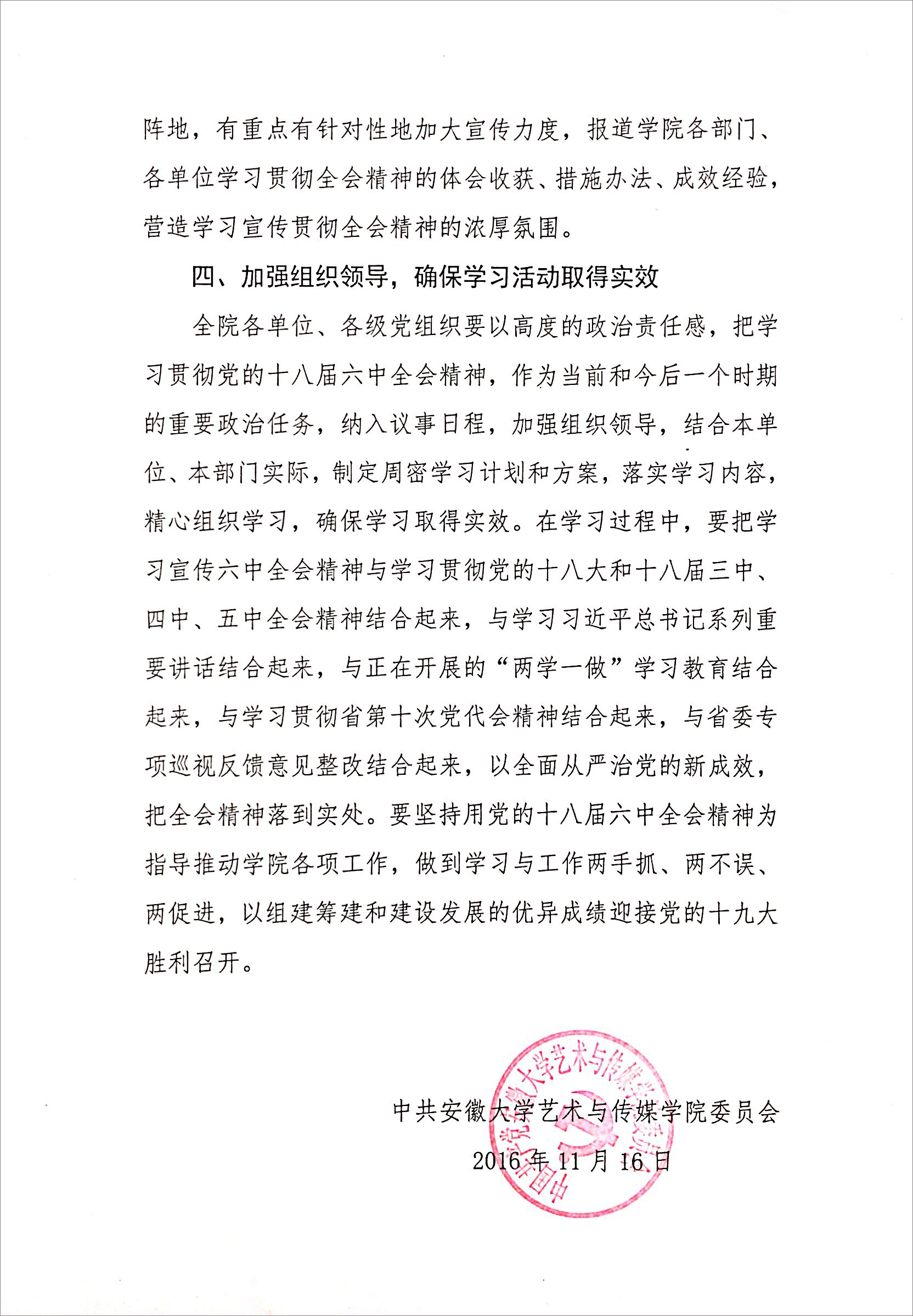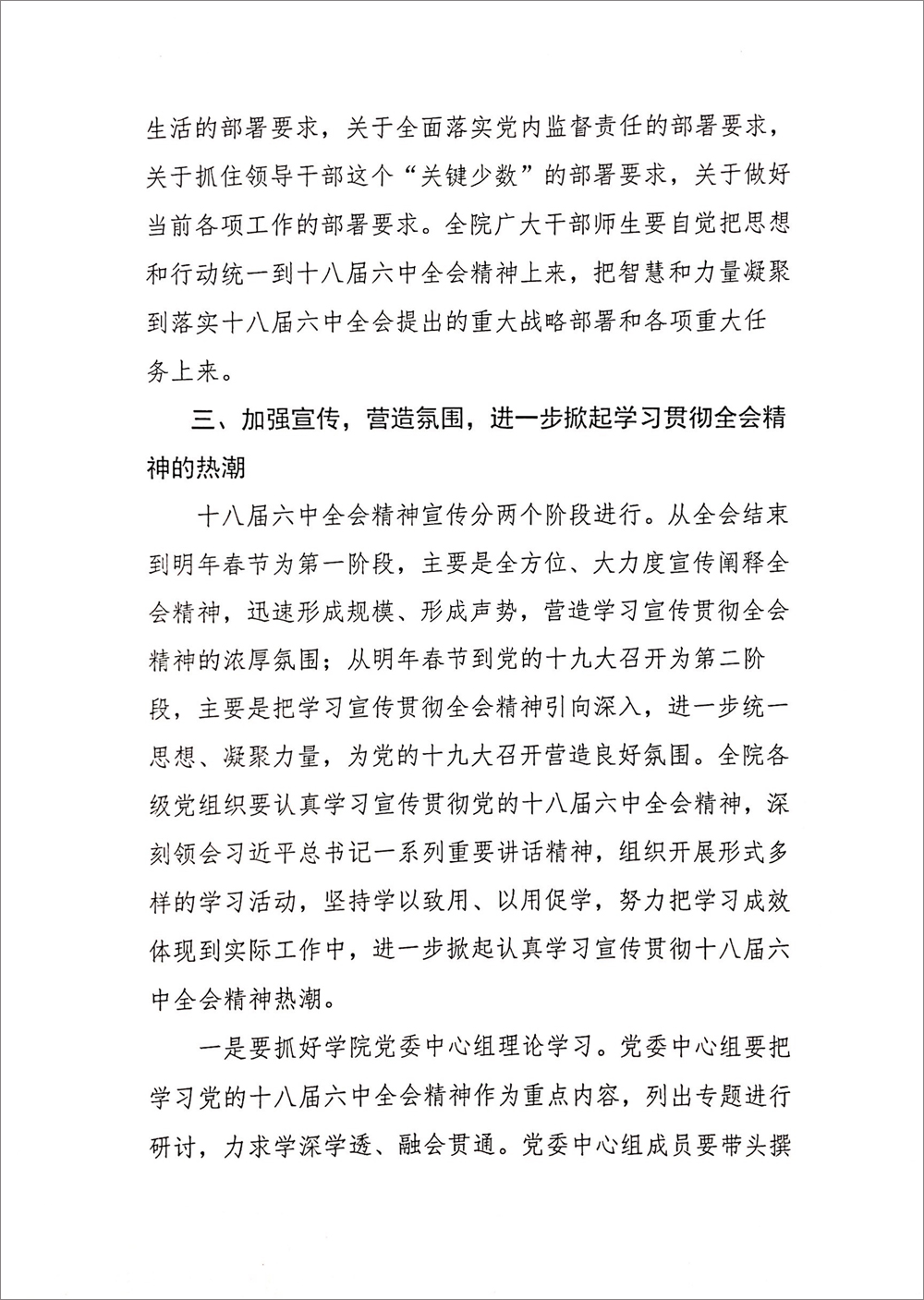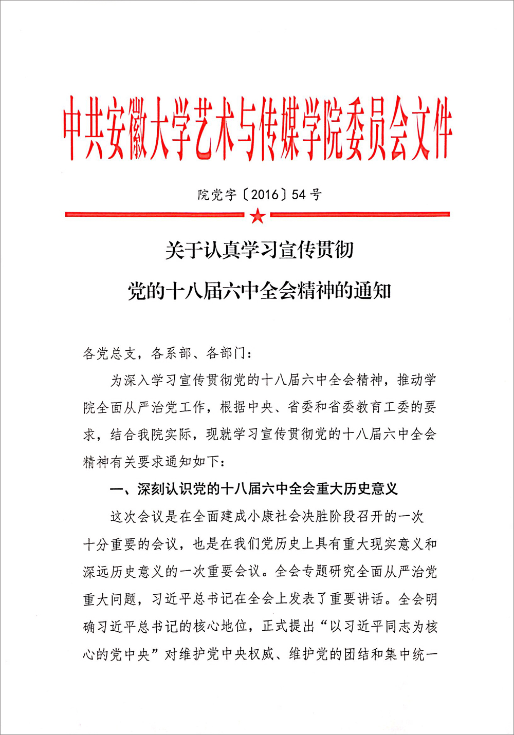 关于认真学习宣传贯彻党的十八届六中全会精神的通知