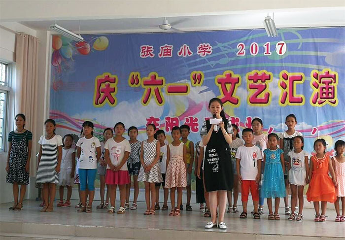 在张庙小学阶梯教室,大家观看了安徽大学艺术与传媒学院暑期志愿服务“情暖童心,艺传五河”大手牵小手联欢会。