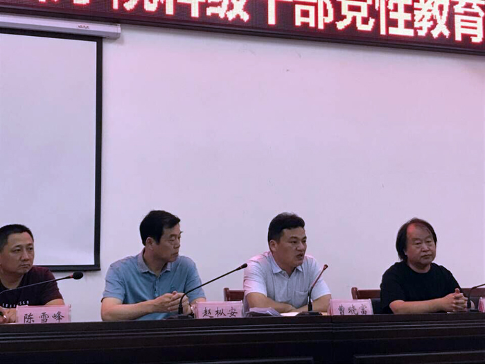 曹晓富作动员讲话,他指出,举办内设部门负责人党性教育培训是深入开展“两学一做”常态化制度化专题警示教育的需要,对推进学院党总支、党支部标准化建设有重要意义。他要求全体学员要一切行动听指挥;严肃认真,明确身份;认真学习,撰写作业。曹晓富还提醒大家注意安全、注意言行、注意团结,时刻以党员身份严格要求自己。