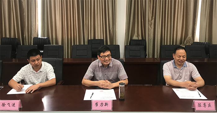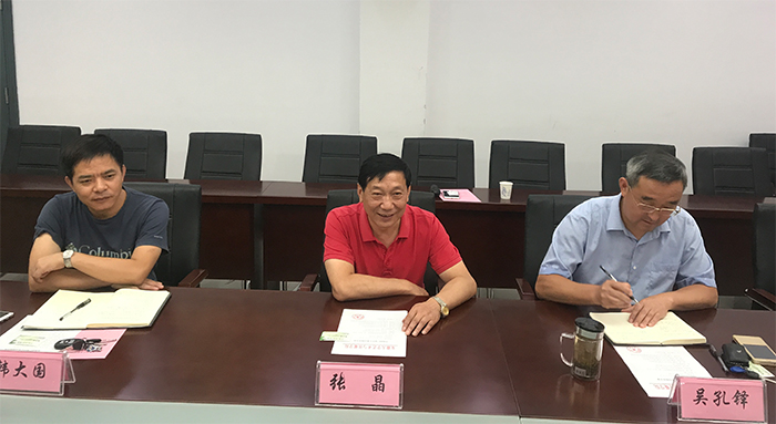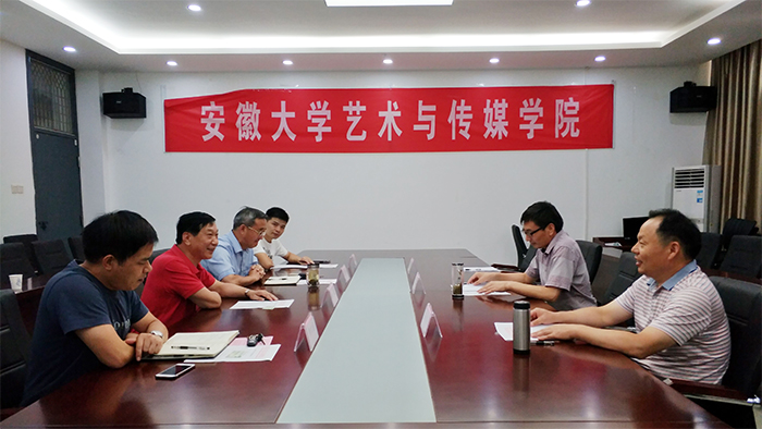 张晶对崔力新一行冒着酷暑来访表示热切欢迎。他指出,岳西县广电中心是我院较早合作的单位,合作三年来,推出了广播剧《给你一个家》、话剧《给我一个家》、岳西县首届春节联欢晚会、微电影《烛摇红》等一系列的作品。这些作品不仅宣传了当地的文化、人文风貌和自然景观,也为学院师生实践提供了宝贵的平台,实现了双方的互惠共赢。崔部长甫一上任,就率队来学院,相信双方的合作将会更加深入、更加广泛。