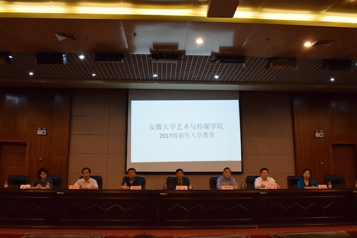 9月24日,学院召开了两场新生入学教育会议,分别由党委副书记沈端良和副院长张晶代表院领导出席会议并致辞,对2017级新生提出殷切希望。第一场教育活动面向新闻播音系和音乐舞蹈系,第二场面向美术设计系和戏剧影视系。学院办公室主任、党委宣传部长吴孔铎向广大师生进行校史校情介绍,学生处、总务处、保卫处处长刘长华进行安全专题教育,团委陈明书记对学生们进行理想信念教育,另外学院还邀请了省银监局委派的金融机构对学生进行金融安全教育。各系负责人和新生辅导员列席了会议。