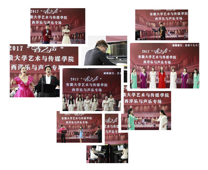 2017“春之声”专场演出是音乐舞蹈系“四季”系列音乐会之一,也是艺术类高层次应用型表演人才教学资源库建设项目、安徽省高等学校专业结构优化调整与专业改造项目、安徽省高校领军人才引进与培育计划项目、安徽省高等学校省级质量工程特色(品牌)专业项目和安徽省高等学校省级质量工程名师(大师)工作室项目的系列成果之一,更是学院“砥砺奋进,喜迎十九大!”系列活动的重要组成部分,表现了学院上下全面深入贯彻党的十八届六中全会精神,以优异的成绩迎接党的十九大胜利召开的精神风貌。(文/薛业浩 审/孙来法)