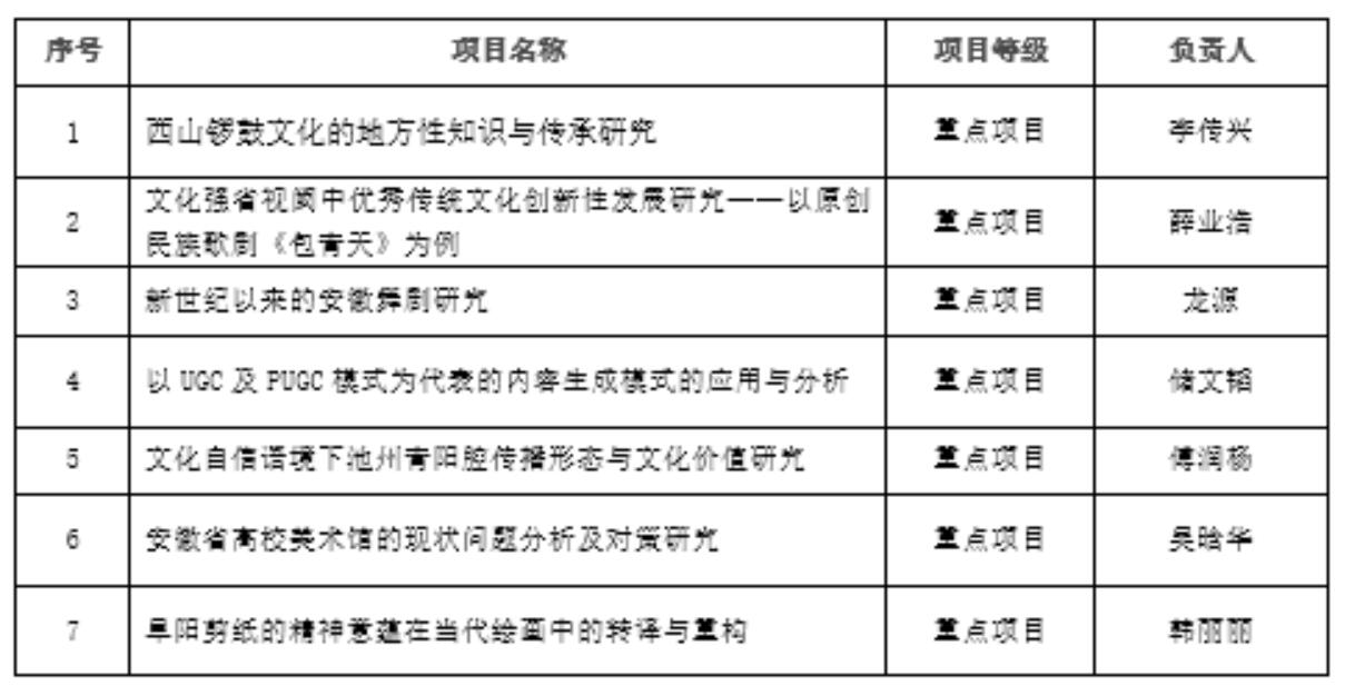 安徽大学艺术与传媒学院2018年省级自然科学项目评审结果