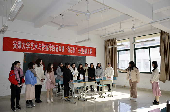微话剧比赛在17广播电视学专升本(4)班表演的《骄杨似我》中拉开序幕,四个系10个参赛班级围绕学院本学期开设思想政治理论课教育某一主题分别表演了《红色娘子军》(17广电3班)、《我心献给党》(17视觉传达设计1、2班)、《回家》(17黄梅本科班)、《五四·青年运动》(17广电专升本1班)、《永不言弃》(17级音乐表演本科班)、《重庆谈判》(17广播电视学专升本2班)、《高考1977》(17视觉传达设计3、4班)等8个由师生撰写剧本的微话剧。经过激烈角逐,李越阳老师指导的17黄梅本科班表演的《回家》和高元龙老师指导的17广电专升本1班表演的《五四·青年运动》荣获一等奖,其余分获二、三等奖。