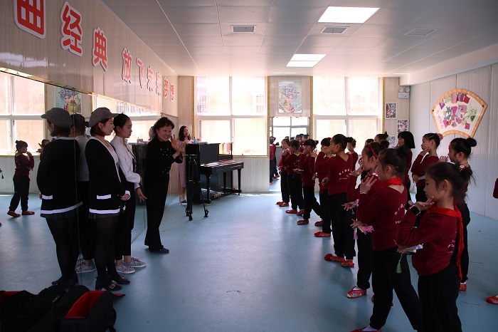 “清早起来菱花镜了照,梳一个油头桂花香,脸上擦的桃花粉,口点的胭脂杏花红。”4月17日上午,安徽大学艺术与传媒学院“戏曲进校园”走进了肥东县店埠学区中心学校“荷之韵”梨园社,开展了第一次校外社团辅导活动,该校指导教师黄廷燕正带着孩子们进行排练,稚嫩婉转的童音萦绕在校园的上空。