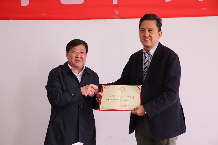 在授聘仪式上,周之虎详细地介绍了我院发展历程及未来方向,并为靳智伟教授颁发客座教授聘书。他说,在新葡的京集团3512vip筹建的重要阶段,靳智伟教授的到来,不仅能提高我院学生眼界及水平,更是对学院申报的极大鼓励。