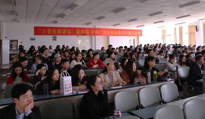 授聘仪式后,靳智伟在第三阶梯教室做了题为《中国广播电视面临的问题与应对》的讲座。他从自身经验出发,对广播电视行业发展现状进行了解读。近两个小时的讲座,台下座无虚席,师生认真聆听。当天下午,靳智伟教授还与新闻播音系的全体教师进行了探讨交流。