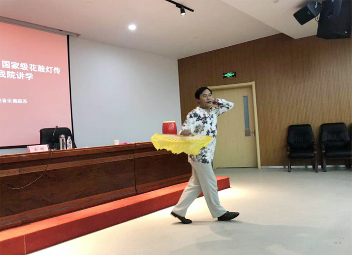 6月6日下午,国家一级编导、国家级花鼓灯传承人、教育部高级专家、安徽花鼓灯艺术研究会会长金明教授应邀在我院举办了题为《魂系淮水舞花鼓》的专题讲座。讲座由音乐舞蹈系副书记李传兴主持,一百余名师生聆听了讲座。