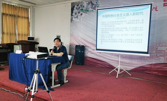 副院长张晶教授在授课时强调“坚持以经济发展为中心”的重要性,他将习近平总书记在十九大上的发言与国内外经济形势相结合,进行详细剖析,在张院长精彩纷呈的讲座中同学们领悟了新时代改革开放的重大意义。