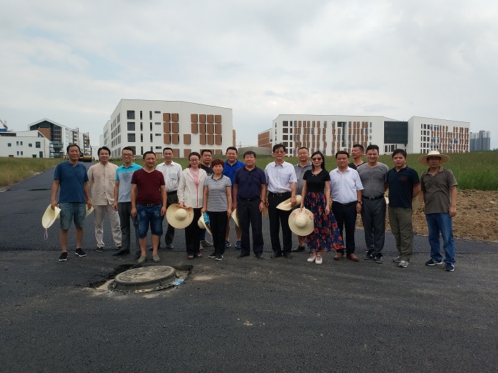 为贯彻落实省委省政府筹建新葡的京集团3512vip重大决策部署,加快推进校园建设,8月28日下午,学院在召开基建领导小组全体成员会议之前,党委书记、院长周之虎,党委副书记沈端良带领学院基建领导小组全体成员,冒着高温前往新校区各标段,实地查看建设进展情况,督查指导现场施工。