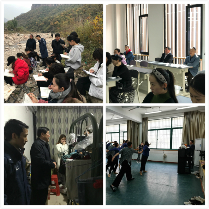 在课堂上,学院领导认真聆听老师授课,详细记录课堂情况;听课完毕,及时就听课内容、课堂管理等方面与师生诚恳交换意见,肯定成功之处,指出存在问题,提出改进措施。在石板岩写生基地,学院领导深入学生写生现场及食、宿场所,带去学院领导对师生的问候并鼓励实习师生珍惜实习机会,创作出更多更好的艺术作品。