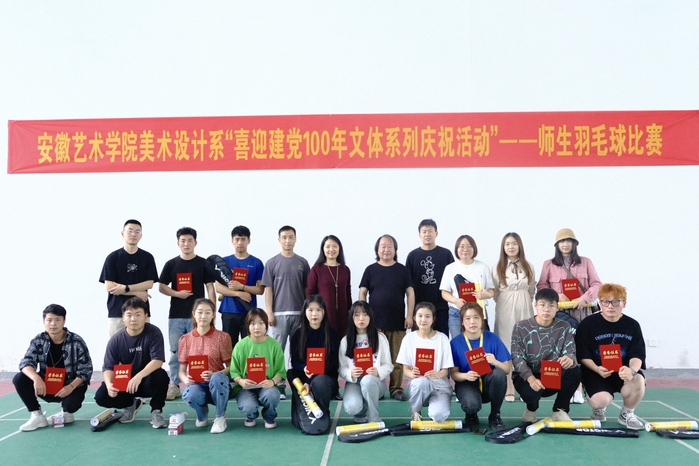 为热烈庆祝中国共产党成立100周年,进一步丰富和活跃美术设计系文体生活,展示我系师生积极进取、昂扬向上的精神风貌,5月10日至12日,由美术设计系主办、美术设计系学管办承办、美术设计系团总支协办的师生羽毛球比赛在舞蹈楼三楼羽毛球场开展。系党总支书记罗耀东、副书记张丽丽到场观赛,美术设计系师生积极参加。