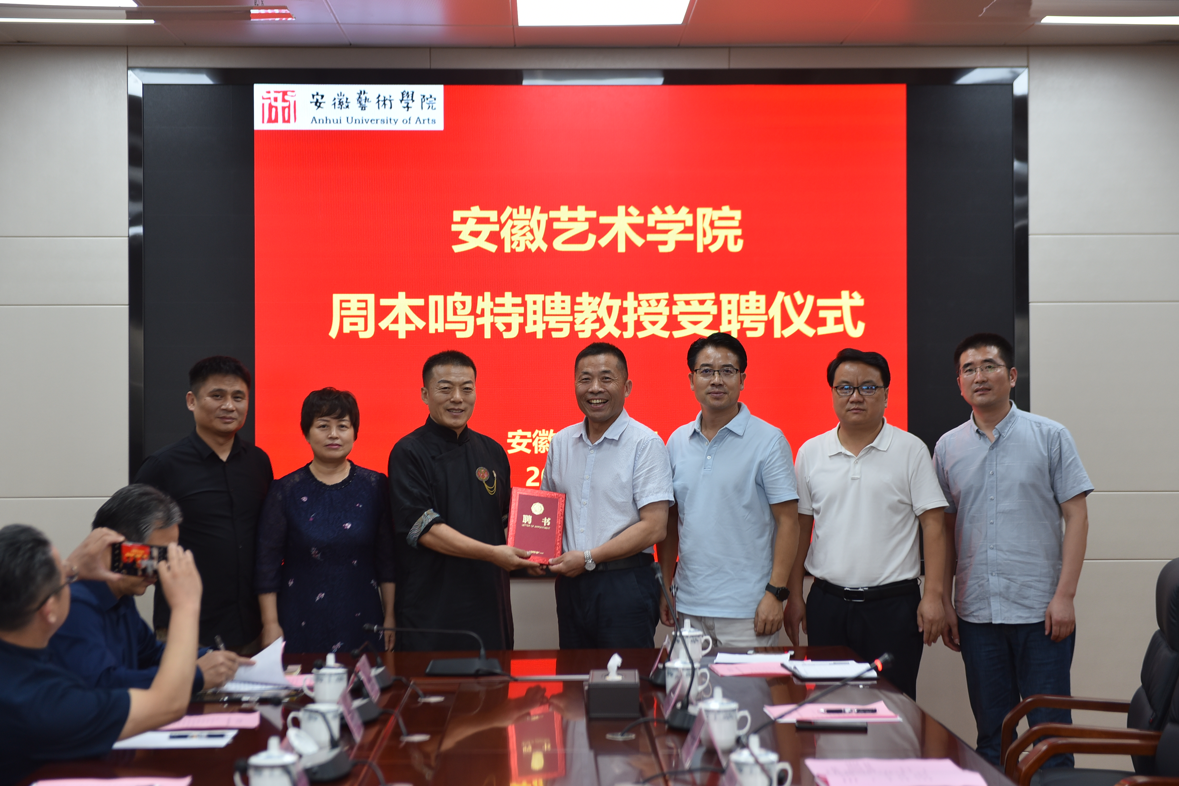 随后,中国吹打乐学院传承与发展研讨会暨周本鸣特聘教授受聘仪式在综合楼823室举行。来自中国艺术研究院、中央音乐学院、浙江师范大学、国家京剧院、北京广播电视台、菏泽学院及亳州学院等省内外专家,校党委副书记、院长樊嘉禄,人事处处长吕中华,科研处处长陈明海及音乐舞蹈系师生代表出席会议。会议由樊嘉禄主持。