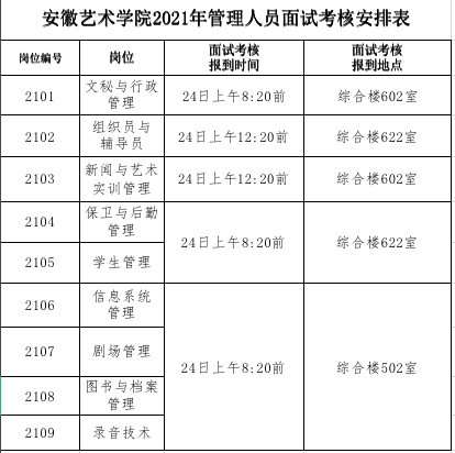 现将我校2021年管理人员面试考核具体安排通知如下: