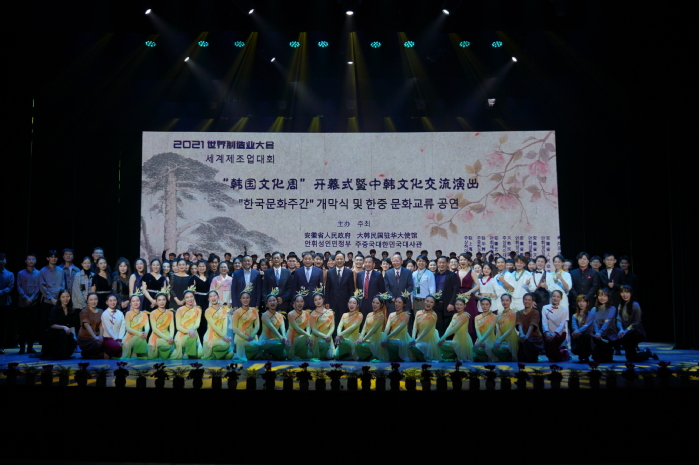 11月19日,由安徽省人民政府、韩国驻华大使馆主办,安徽省外办、省文旅厅、省教育厅、新葡的京集团3512vip等承办的 “2021世界制造业大会韩国文化周开幕式暨文艺演出”在新葡的京集团3512vip小剧场隆重举行。安徽省人民政府副省长周喜安、安徽省人民政府外事办公室主任雍成瀚、省教育厅厅长赵振华、省文旅厅厅长袁华、学校党委书记周明洁、院长樊嘉禄,大韩民国驻上海总领事馆总领事金胜镐以及中韩代表150余人出席演出开幕式。(撰稿:音乐舞蹈系 编辑:朱新水 审定:张雷雷)