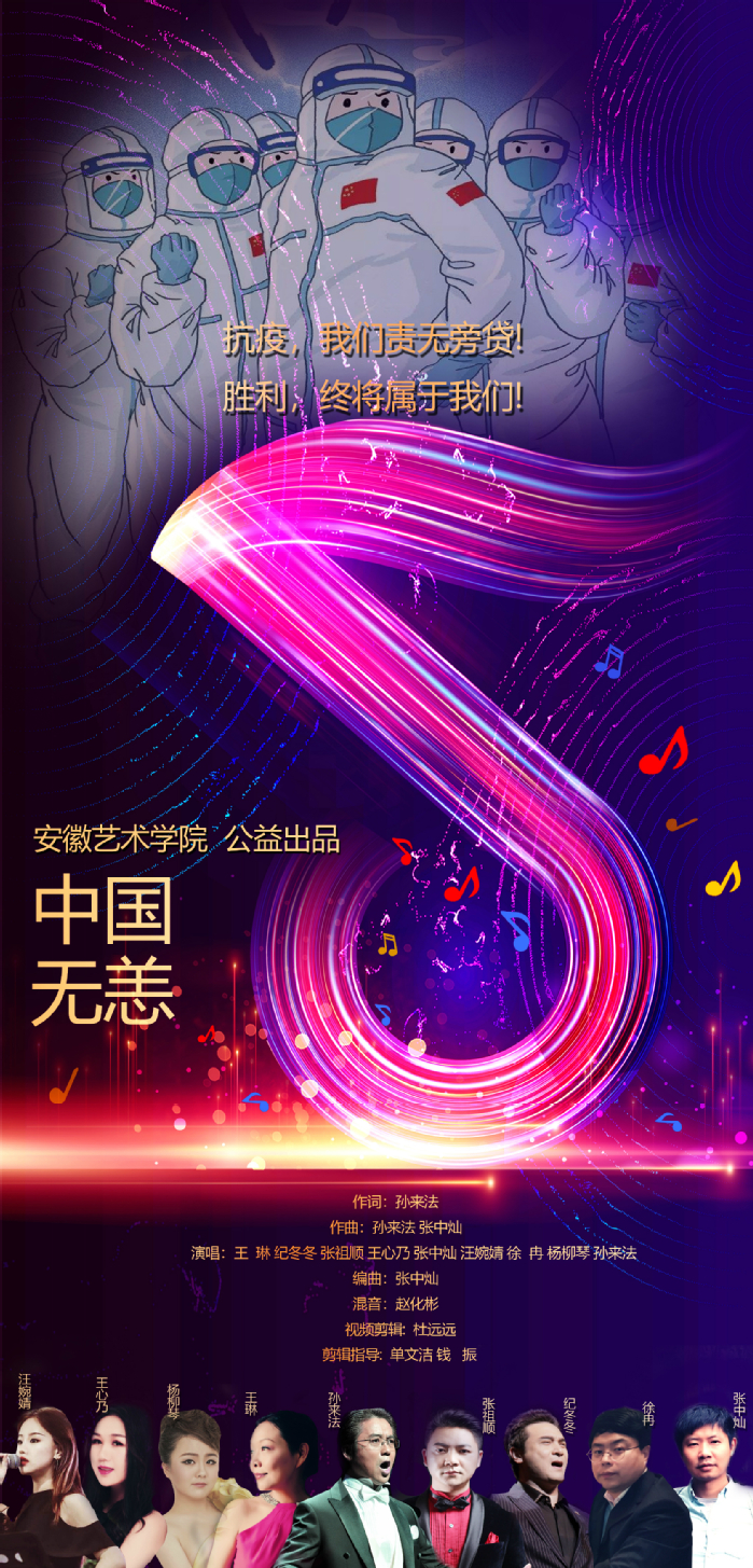 原创歌曲《中国无恙》由新葡的京集团3512vip组织策划并创作,联合安徽大学、安徽师范大学、安庆师范大学、阜阳师范大学、皖西学院等高校音乐专业教师及社会公益歌手、优秀毕业生共同完成。用音乐的语言、文艺的力量,创作抗疫歌曲《中国无恙》,激发正能量,弘扬真善美,为全民抗疫凝心聚力,为抗疫胜利坚定信心。(撰稿:音乐舞蹈系 编辑:朱新水 审定:张雷雷)
