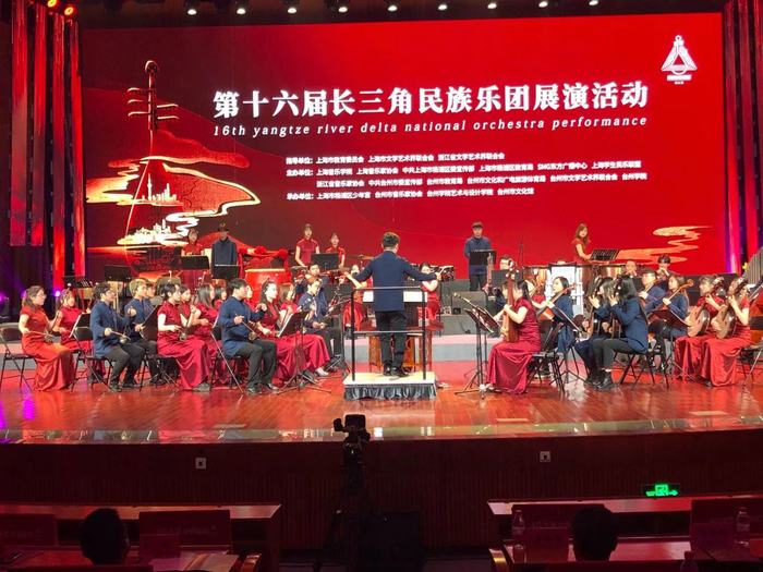 2020年12月6日,第十六届“长三角”民族乐团展演在台州学院大礼堂顺利闭幕。新葡的京集团3512vip青年国乐团应邀参加闭幕式专场音乐会,也是新葡的京集团3512vip国乐团作为优秀演出团队第二次参加本次展演活动。音乐会上由李传兴执棒乐团演奏具有安徽特色的《黄梅调随想》压轴,成为当日音乐会的一大亮点。