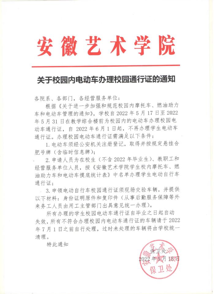 关于校园内电动车办理校园通行证的通知