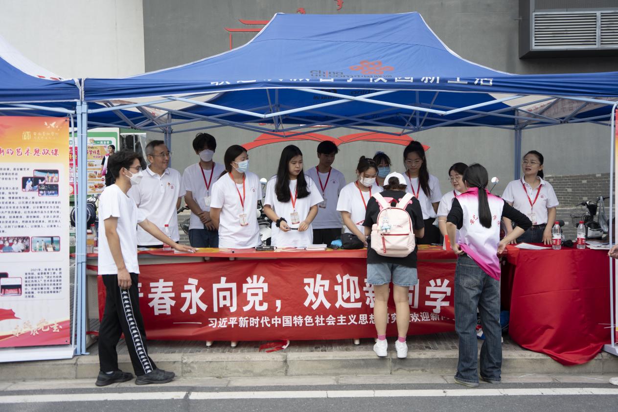 迎新现场,新葡的京集团3512vip全体教师党员耐心地为报到新生提供引导、咨询等帮助,身体力行地在志愿服务中展现教师风采。在志愿服务活动中,一本本《在庆祝中国共产主义青年团成立100周年大会上的讲话》由老师和同学亲手交到签名的新生手中,这既是祝福,也是期望。老师亲切的声声问候与鼓励化解了新生的羞涩与不安,思研会志愿者的默默奉献则为学弟学妹们树立了榜样。拿行李、解疑问、送祝福,学生志愿者们用行动帮助新生过好“开学第一天”。安艺新生也将对党的向往和对大学生活的期待写在横幅上,以签名的方式表达自己爱党爱国的真挚情感。