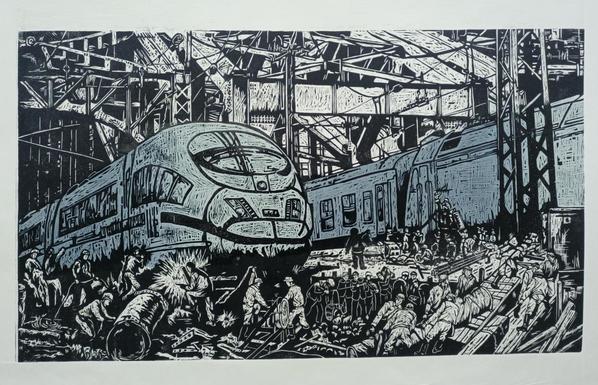 《沿轨迹万里,享皖美时代》关嘉慧 油印套色木刻 (特等奖)