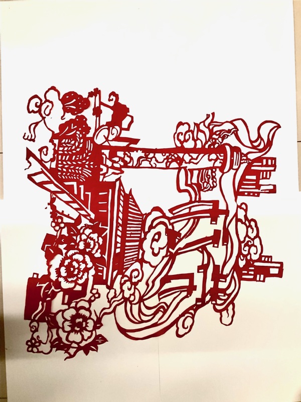 宏伟的成就来自点点滴滴看不见的劳动,通过将劳动二字反转再与线条交织隐藏劳动二字,但仔细看就能发现劳动就在其中。