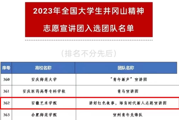 日前,由团中央青年志愿者行动指导中心、全国青少年井冈山革命传统教育基地、井冈山管理局联合开展的井冈山精神志愿宣讲活动公布入选团队名单,我校“讲好红色故事 培育时代新人”志愿宣讲团成功入选。