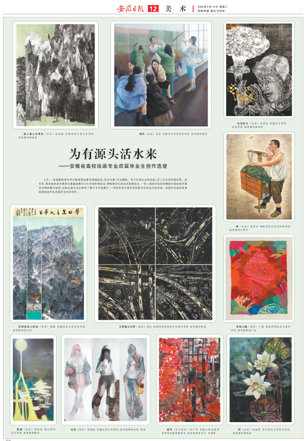 美术学院高度重视毕业生作品创作,成立毕业生创作领导小组,安排指导老师精心指导学生创作。此次毕业生作品在《安徽日版》的成功刊发是美术学院始终坚持以生为本,强化学风建设,落实三全育人,推动高质量发展的具体成果。(撰稿:刘民 初核:陈明海 编辑:朱新水 审定:张雷雷)