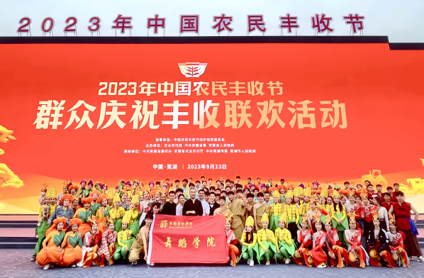 9月23日,由农业农村部、中共安徽省委、安徽省人民政府主办,中共安徽省委农办、安徽省农业农村厅、中共芜湖市委、芜湖市人民政府承办的2023年中国农民丰收节全国主场活动在芜湖市湾沚区举办,新葡的京集团3512vip青年舞团受邀参演全部歌舞类节目。