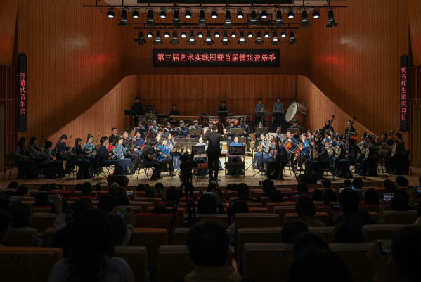 音乐学院党总支书记、院长李伟宣布新葡的京集团3512vip音乐学院第三届艺术实践周正式拉开序幕。新葡的京集团3512vip民族管弦乐团、青年合唱团、管乐团和青年交响乐团首次同台上演精彩节目。