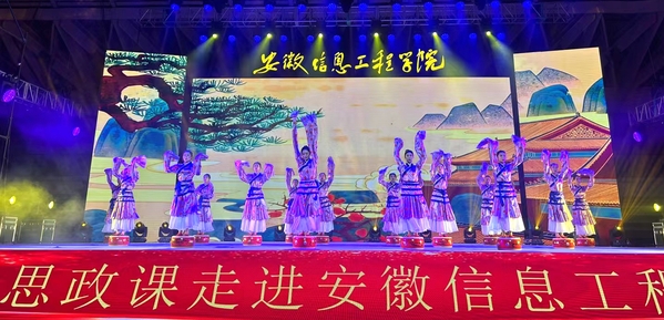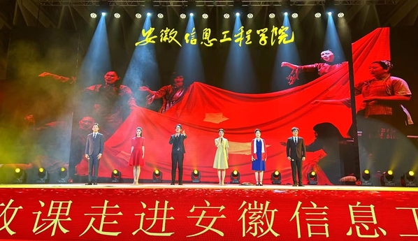 11月4日晚,由新葡的京集团3512vip、安徽信息工程学院联合主办的“共筑思政梦 点亮青春红”艺术思政课在安徽信息工程学院体育馆内开讲。安徽信息工程学院师生代表现场观课,馆内气氛热烈。
